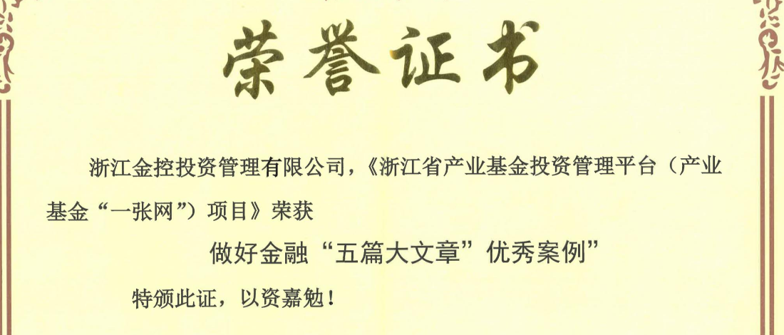 喜報 | 浙江省產(chǎn)業(yè)基金投資管理平臺項目榮獲做好金融“五篇大文章”優(yōu)秀案例